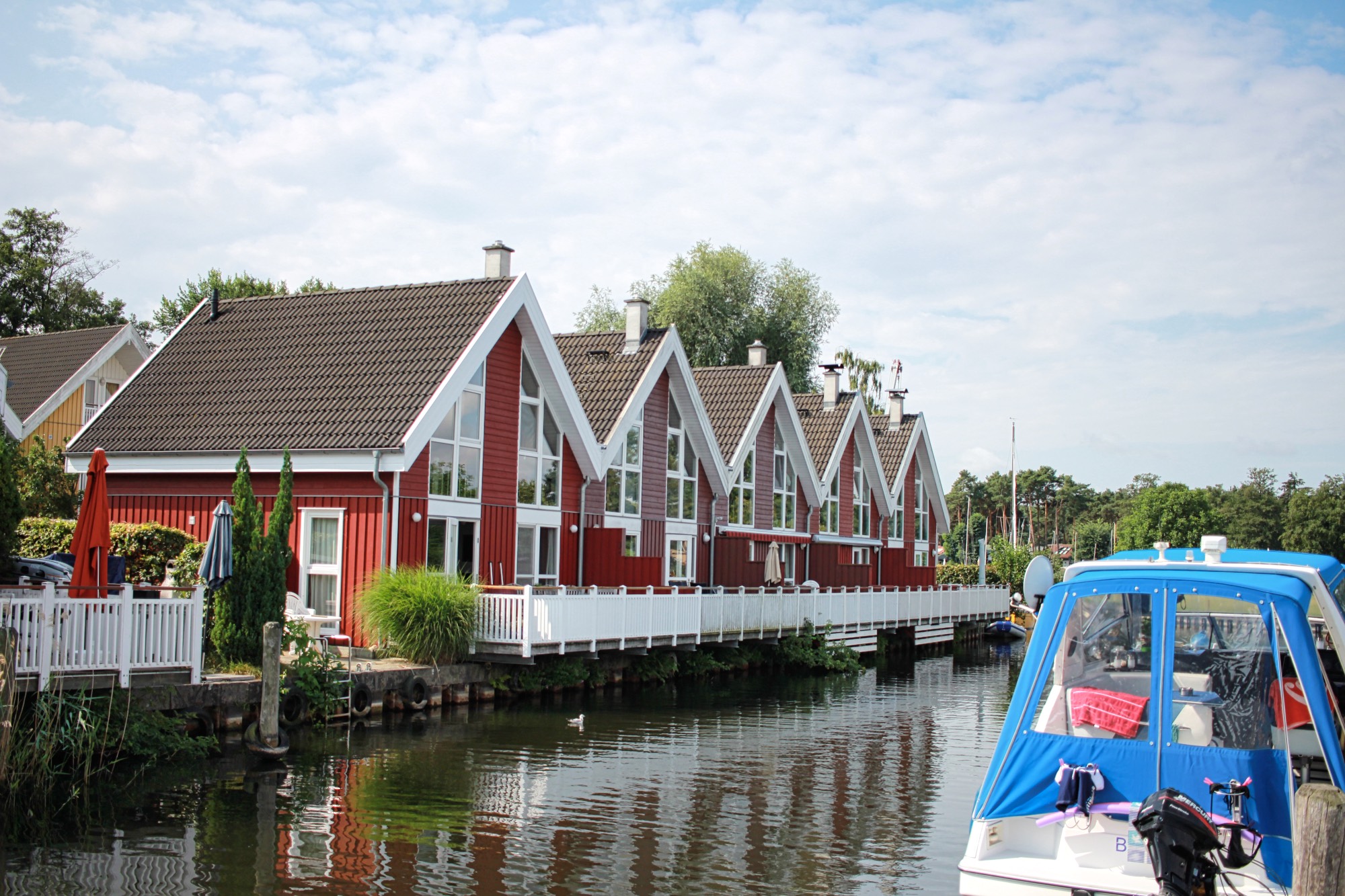 2-Etagen-Ferienreihenhaus im Ferienpark Scharmützelsee, direkt am Hafenbecken mit Aussicht auf das Wasser gelegen.